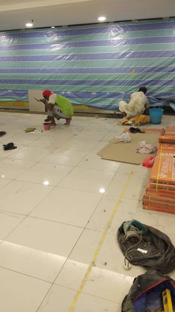 Kerja-kerja membekal dan memasang jubin lantai homogeneous jenis porcelain di ruang legar G Pejabat Pengarah Tanah Galian (WPKL)
